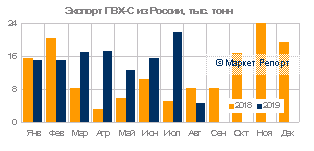 По результатам работы за восемь месяцев анализируемого периода размер поставок на экспорт из РФ суспензионного поливинилхлорида (ПВХ-С) составил 130,1 тыс.тонн, что на 55% превышает итоги 2018 года. По данным «Маркет Репорт» отмечается рост объема импортных поставок до 36,9 тыс.тонн, что составляет 174%.